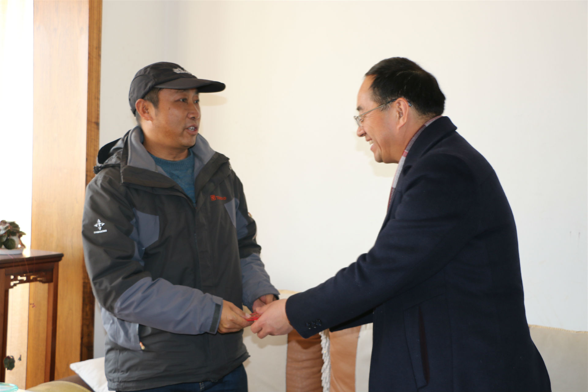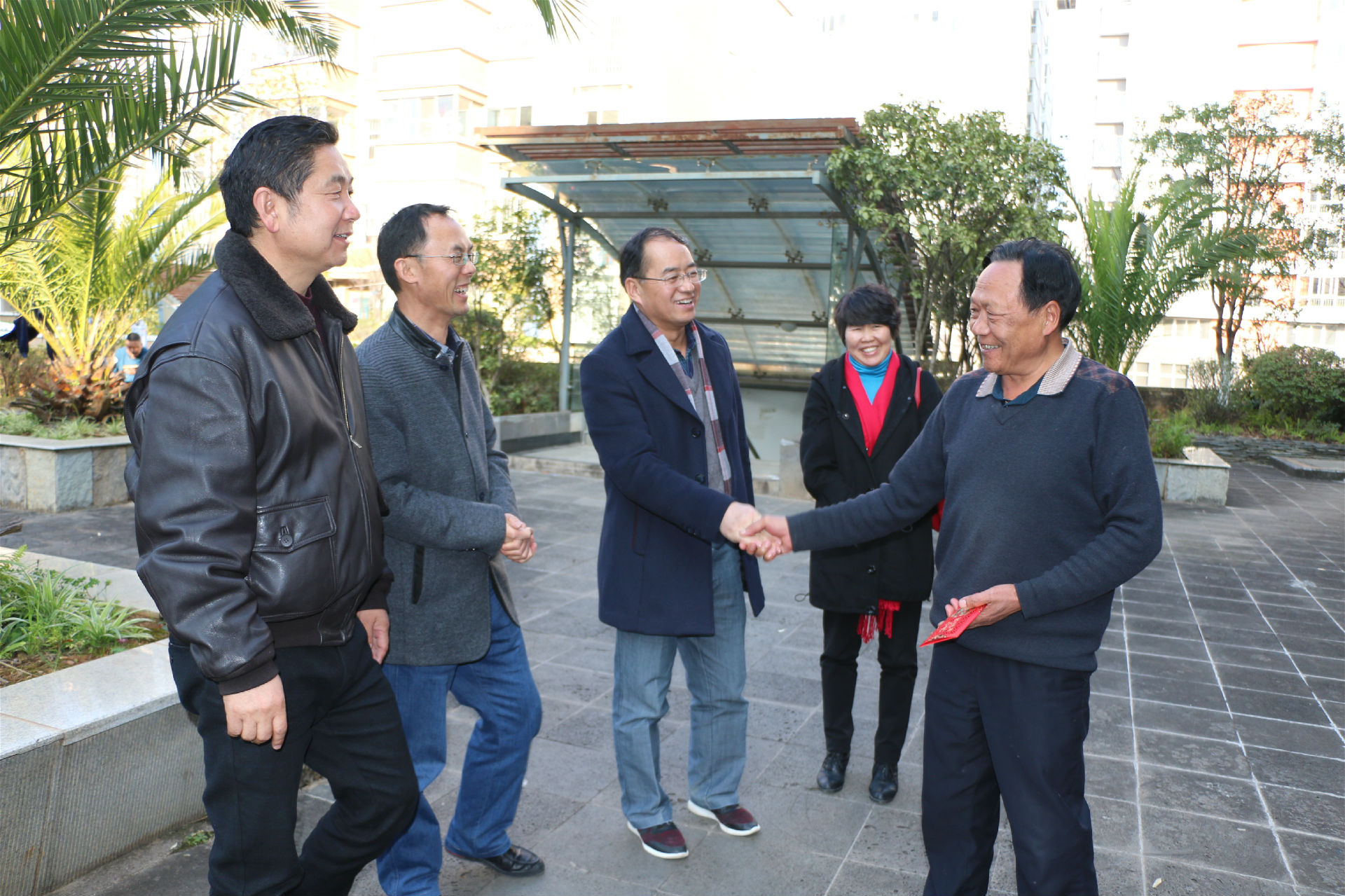 春节将至,离退休老干部、困难职工的生活状况如何,一直牵挂着校领导的心。为及时将党组织的关怀和温暖送达,1月25日,学校组织开展了春节走访慰问活动。学校党委书记、校长尹士端率领学校领导班子成员、办公室及工会人员一行8人,到离退休老干部、困难党员和患重病职工家里走访慰问,为他们送上党组织的关心和新年的问候。