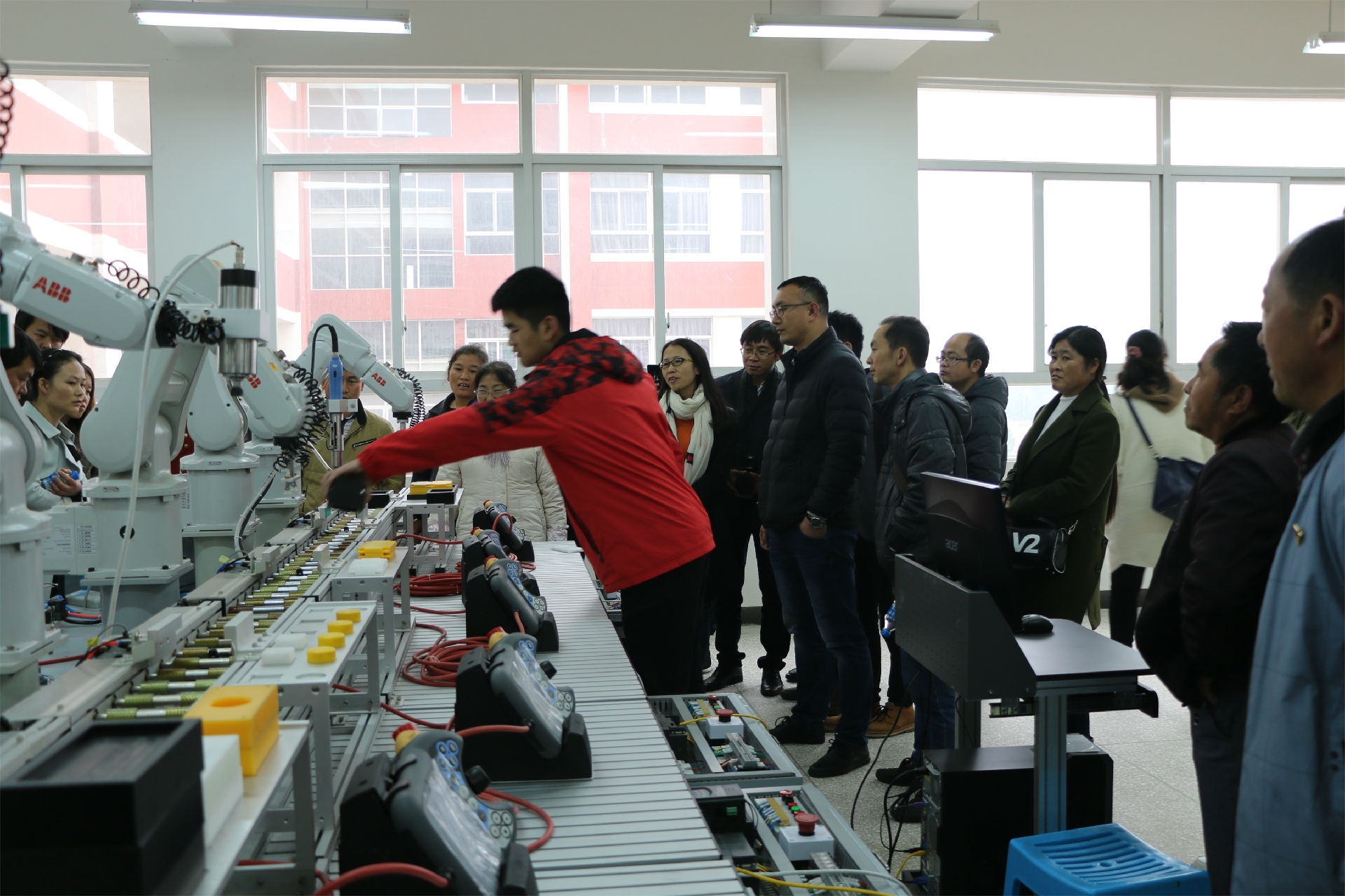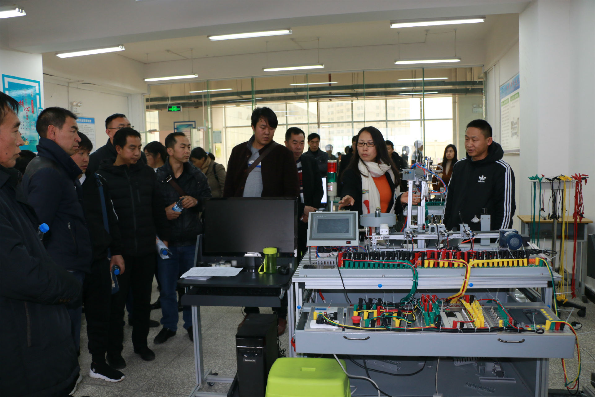 参观团队先后参观了学校电气实训室和机械实训车间,并观看了幼教班学生文艺演出。双方针对学校的特色专业建设及学生实习就业等问题展开深入交流。